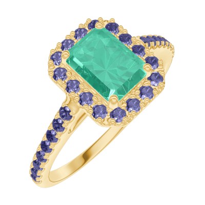 « L'ATELIER » NR. 171006Ring Geelgoud 9 karaat - Smaragd Rechthoekig 0.5 Karaat - Halo Blauwe saffier - Setting Blauwe saffier 4.7 (44)