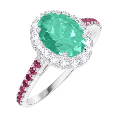 « L'ATELIER » NR. 171020Ring Witgoud 9 karaat - Smaragd Ovaal 0.5 Karaat - Halo Diamant - Setting Robijn 4.5