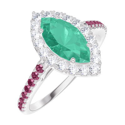 « L'ATELIER » NR. 171115Ring Witgoud 18 karaat - Smaragd Markies 0.5 Karaat - Halo Diamant - Setting Robijn