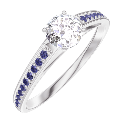 « L'ATELIER » NR. 180015Ring Witgoud 18 karaat - Laboratorium diamant rond 0.3 Karaat - Setting Blauwe saffier 4.5 (36)