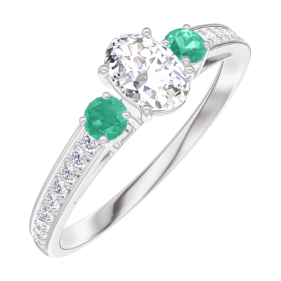 « L'ATELIER » Nº180387Ring Witgoud 18 karaat - Laboratorium diamant Ovaal 0.3 Karaat - Aanleunende edelstenen Smaragd - Setting Laboratorium diamant 5
