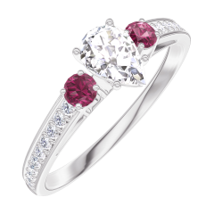 Ring Witgoud 18 karaat - Laboratorium diamant Peer 0.3 Karaat - Aanleunende edelstenen Robijn - Setting Laboratorium diamant