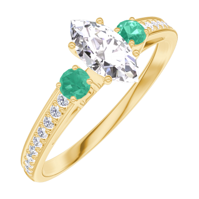 « L'ATELIER » NR. 180585Ring Geelgoud 18 karaat - Laboratorium diamant Markies 0.3 Karaat - Aanleunende edelstenen Smaragd - Setting Laboratorium diamant