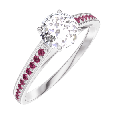 « L'ATELIER » Nº182412Ring Witgoud 9 karaat - Laboratorium diamant rond 0.5 Karaat - Setting Robijn 4.5
