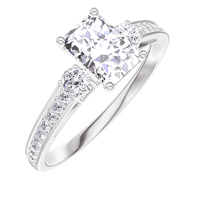 « L'ATELIER » NR. 182628Ring Witgoud 9 karaat - Laboratorium diamant Rechthoekig 0.5 Karaat - Aanleunende edelstenen Laboratorium diamant - Setting Laboratorium diamant