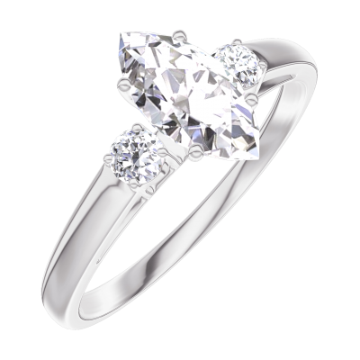 « L'ATELIER » Nº182924Ring Witgoud 9 karaat - Laboratorium diamant Markies 0.5 Karaat - Aanleunende edelstenen Laboratorium diamant