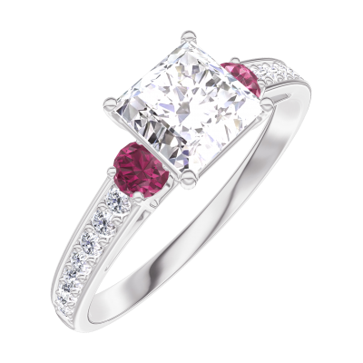« L'ATELIER » Nº184947Ring Witgoud 18 karaat - Laboratorium diamant Prinses 0.7 Karaat - Aanleunende edelstenen Robijn - Setting Laboratorium diamant