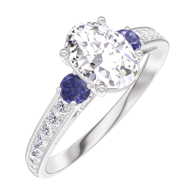 « L'ATELIER » Nº185168Ring Witgoud 9 karaat - Laboratorium diamant Ovaal 0.7 Karaat - Aanleunende edelstenen Blauwe saffier - Setting Laboratorium diamant