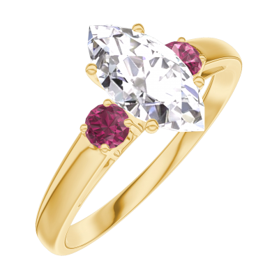 « L'ATELIER » Nº185342Ring Geelgoud 9 karaat - Laboratorium diamant Markies 0.7 Karaat - Aanleunende edelstenen Robijn
