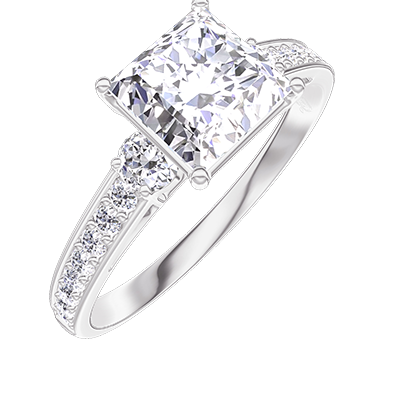 « L'ATELIER » NR. 187328Ring Witgoud 9 karaat - Laboratorium diamant Prinses 1 Karaat - Aanleunende edelstenen Laboratorium diamant - Setting Laboratorium diamant