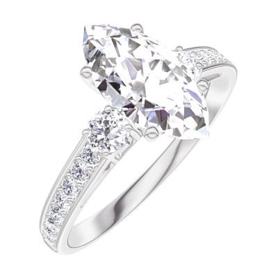 « L'ATELIER » NR. 187728Ring Witgoud 9 karaat - Laboratorium diamant Markies 1 Karaat - Aanleunende edelstenen Laboratorium diamant - Setting Laboratorium diamant