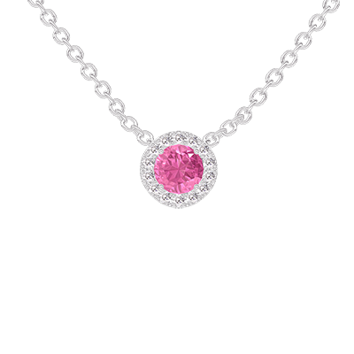 « L'ATELIER » NR. 189617Halsketting Witgoud 9 karaat - Rosé saffier rond 0.3 Karaat - Halo Diamant - Ketting Gourmet