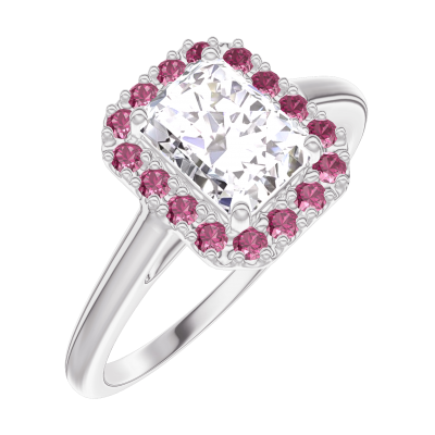 « L'ATELIER » Nº190115Ring Witgoud 18 karaat - Laboratorium diamant Rechthoekig 0.5 Karaat - Halo Robijn 4.7