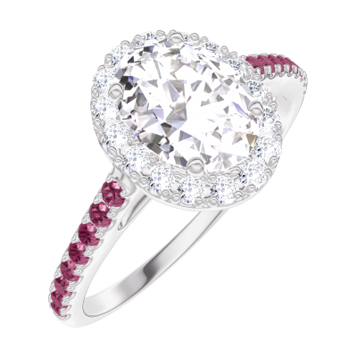 « L'ATELIER » NR. 190156Ring Witgoud 9 karaat - Laboratorium diamant Ovaal 0.5 Karaat - Halo Laboratorium diamant - Setting Robijn 4.5