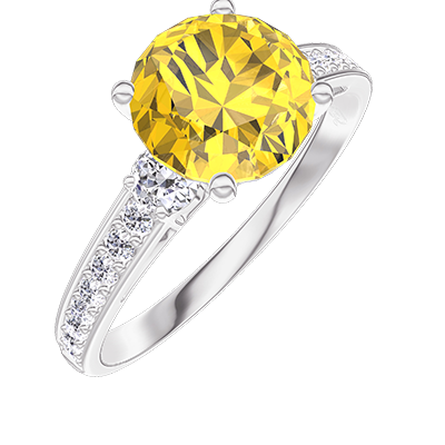 « L'ATELIER » NR. 192652Ring Witgoud 9 karaat - Gele saffier rond 1 Karaat - Aanleunende edelstenen Diamant - Setting Diamant 4.8