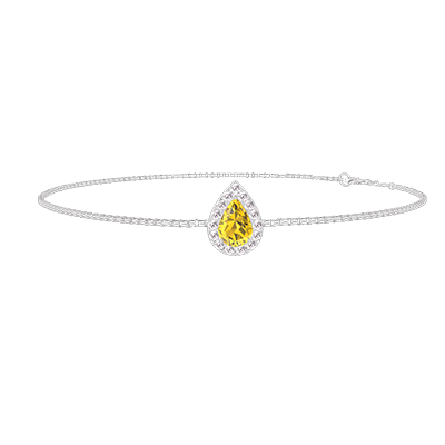 « L'ATELIER » NR. 194911Armband Witgoud 18 karaat - Gele saffier Peer 0.3 Karaat - Halo Diamant - Ketting Venetiaans