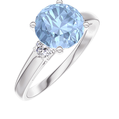 « L'ATELIER » Nº199136Ring Witgoud 9 karaat - Blauwe topaas rond 1 Karaat - Aanleunende edelstenen Diamant 4.7