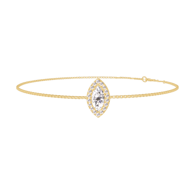 « L'ATELIER » NR. 200365Armband Geelgoud 18 karaat - Laboratorium diamant Markies 0.3 Karaat - Halo Laboratorium diamant - Ketting Venetiaans