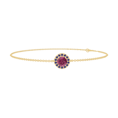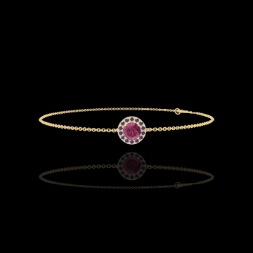 « L'ATELIER » Nº200409Armband Geelgoud 18 karaat - Robijn rond 0.3 Karaat - Halo Blauwe saffier - Ketting Gourmet 4.7