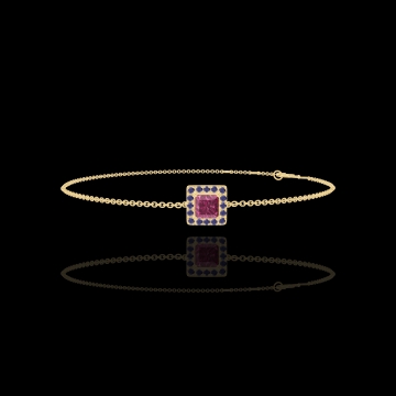 « L'ATELIER » Nº200441Armband Geelgoud 18 karaat - Robijn Prinses 0.3 Karaat - Halo Blauwe saffier - Ketting Gourmet