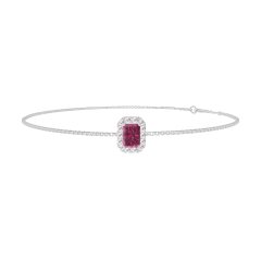 « L'ATELIER » NR. 200464Armband Witgoud 9 karaat - Robijn Rechthoekig 0.3 Karaat - Halo Diamant - Ketting Venetiaans