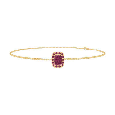 « L'ATELIER » NR. 200469Armband Geelgoud 18 karaat - Robijn Rechthoekig 0.3 Karaat - Halo Robijn - Ketting Venetiaans