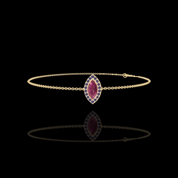 « L'ATELIER » Nº200569Armband Geelgoud 18 karaat - Robijn Markies 0.3 Karaat - Halo Blauwe saffier - Ketting Gourmet