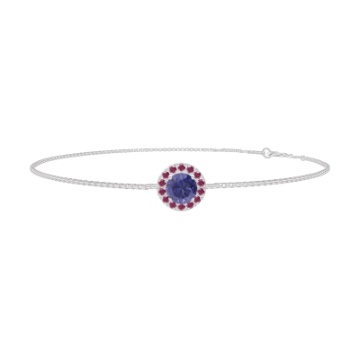 « L'ATELIER » Nº200600Armband Witgoud 9 karaat - Blauwe saffier rond 0.3 Karaat - Halo Robijn - Ketting Venetiaans 4.7