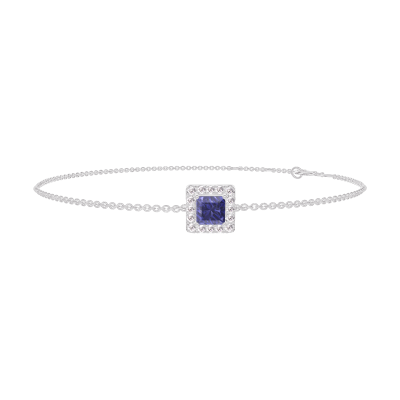 « L'ATELIER » NR. 200619Armband Witgoud 18 karaat - Blauwe saffier Prinses 0.3 Karaat - Halo Diamant - Ketting Gourmet