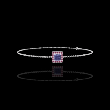 « L'ATELIER » Nº200627Armband Witgoud 18 karaat - Blauwe saffier Prinses 0.3 Karaat - Halo Robijn - Ketting Gourmet