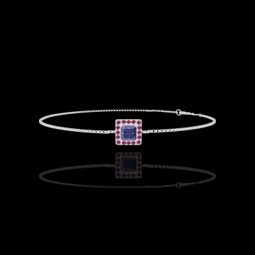 « L'ATELIER » Nº200631Armband Witgoud 18 karaat - Blauwe saffier Prinses 0.3 Karaat - Halo Robijn - Ketting Venetiaans