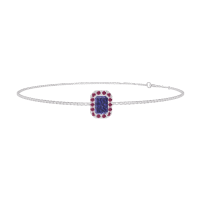 « L'ATELIER » Nº200664Armband Witgoud 9 karaat - Blauwe saffier Rechthoekig 0.3 Karaat - Halo Robijn - Ketting Venetiaans