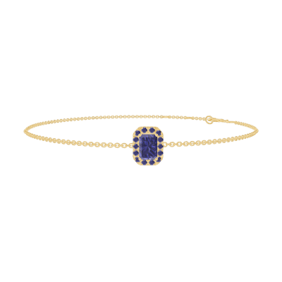 « L'ATELIER » Nº200666Armband Geelgoud 9 karaat - Blauwe saffier Rechthoekig 0.3 Karaat - Halo Blauwe saffier - Ketting Gourmet