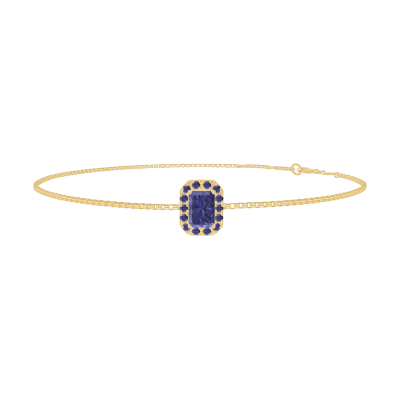 « L'ATELIER » Nº200670Armband Geelgoud 9 karaat - Blauwe saffier Rechthoekig 0.3 Karaat - Halo Blauwe saffier - Ketting Venetiaans