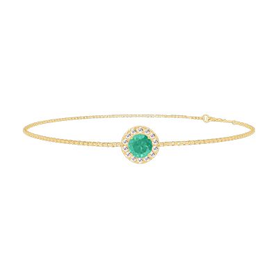 « L'ATELIER » NR. 200781Armband Geelgoud 18 karaat - Smaragd rond 0.3 Karaat - Halo Diamant - Ketting Venetiaans 4.7