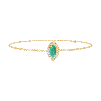 « L'ATELIER » Nº200937Armband Geelgoud 18 karaat - Smaragd Markies 0.3 Karaat - Halo Diamant - Ketting Gourmet