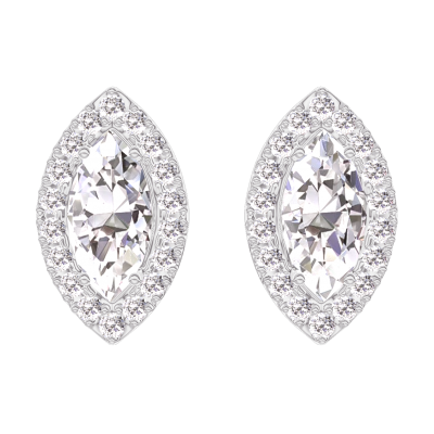 « L'ATELIER » NR. 201047Oorbellen Witgoud 18 karaat - Diamant Markies 0.3 Karaat (2 X) - Halo Diamant