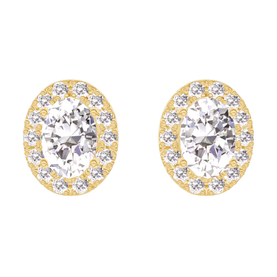 « L'ATELIER » Nº201110Oorbellen Geelgoud 9 karaat - Laboratorium diamant Ovaal 0.3 Karaat (2 X) - Halo Laboratorium diamant