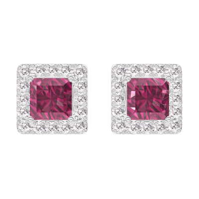 « L'ATELIER » NR. 201176Oorbellen Witgoud 9 karaat - Robijn Prinses 0.3 Karaat (2 X) - Halo Diamant
