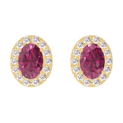 « L'ATELIER » Nº201206Oorbellen Geelgoud 9 karaat - Robijn Ovaal 0.3 Karaat (2 X) - Halo Diamant
