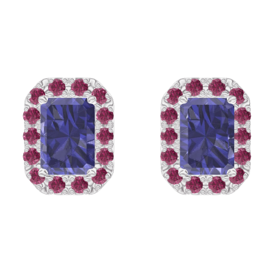 « L'ATELIER » Nº201291Oorbellen Witgoud 18 karaat - Blauwe saffier Rechthoekig 0.3 Karaat (2 X) - Halo Robijn