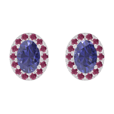 « L'ATELIER » Nº201308Oorbellen Witgoud 9 karaat - Blauwe saffier Ovaal 0.3 Karaat (2 X) - Halo Robijn
