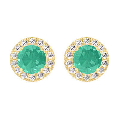 « L'ATELIER » NR. 201349Oorbellen Geelgoud 18 karaat - Smaragd rond 0.3 Karaat (2 X) - Halo Diamant 5