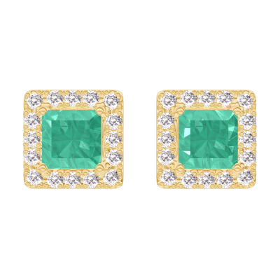 « L'ATELIER » NR. 201365Oorbellen Geelgoud 18 karaat - Smaragd Prinses 0.3 Karaat (2 X) - Halo Diamant