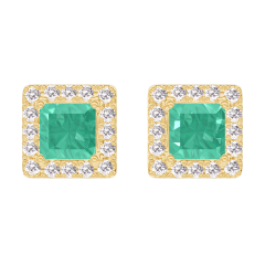 « L'ATELIER » NR. 201365Oorbellen Geelgoud 18 karaat - Smaragd Prinses 0.3 Karaat (2 X) - Halo Diamant