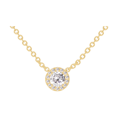 Halsketting Geelgoud 9 karaat - Diamant rond 0.3 Karaat - Halo Diamant - Ketting Gourmet