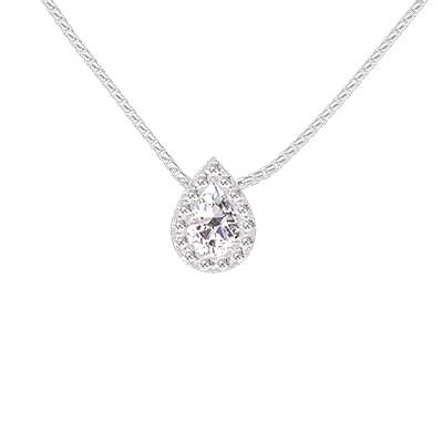 « L'ATELIER » NR. 201775Halsketting Witgoud 18 karaat - Laboratorium diamant Peer 0.3 Karaat - Halo Laboratorium diamant - Ketting Venetiaans