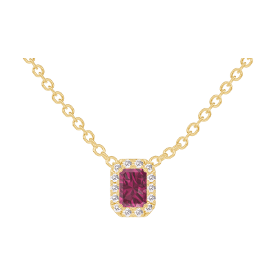 « L'ATELIER » Nº201898Halsketting Geelgoud 9 karaat - Robijn Rechthoekig 0.3 Karaat - Halo Diamant - Ketting Gourmet