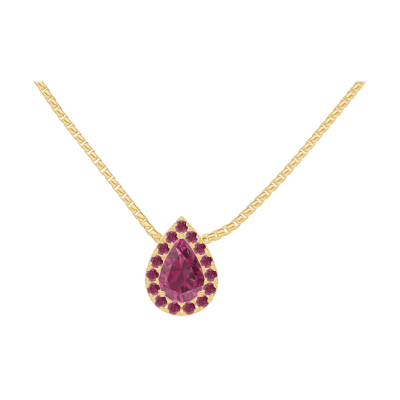 « L'ATELIER » Nº201974Halsketting Geelgoud 9 karaat - Robijn Peer 0.3 Karaat - Halo Robijn - Ketting Venetiaans