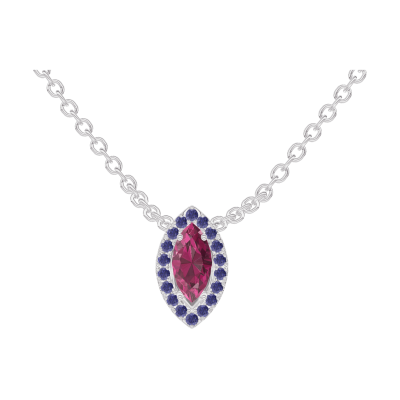 « L'ATELIER » Nº202012Halsketting Witgoud 9 karaat - Robijn Markies 0.3 Karaat - Halo Blauwe saffier - Ketting Gourmet
